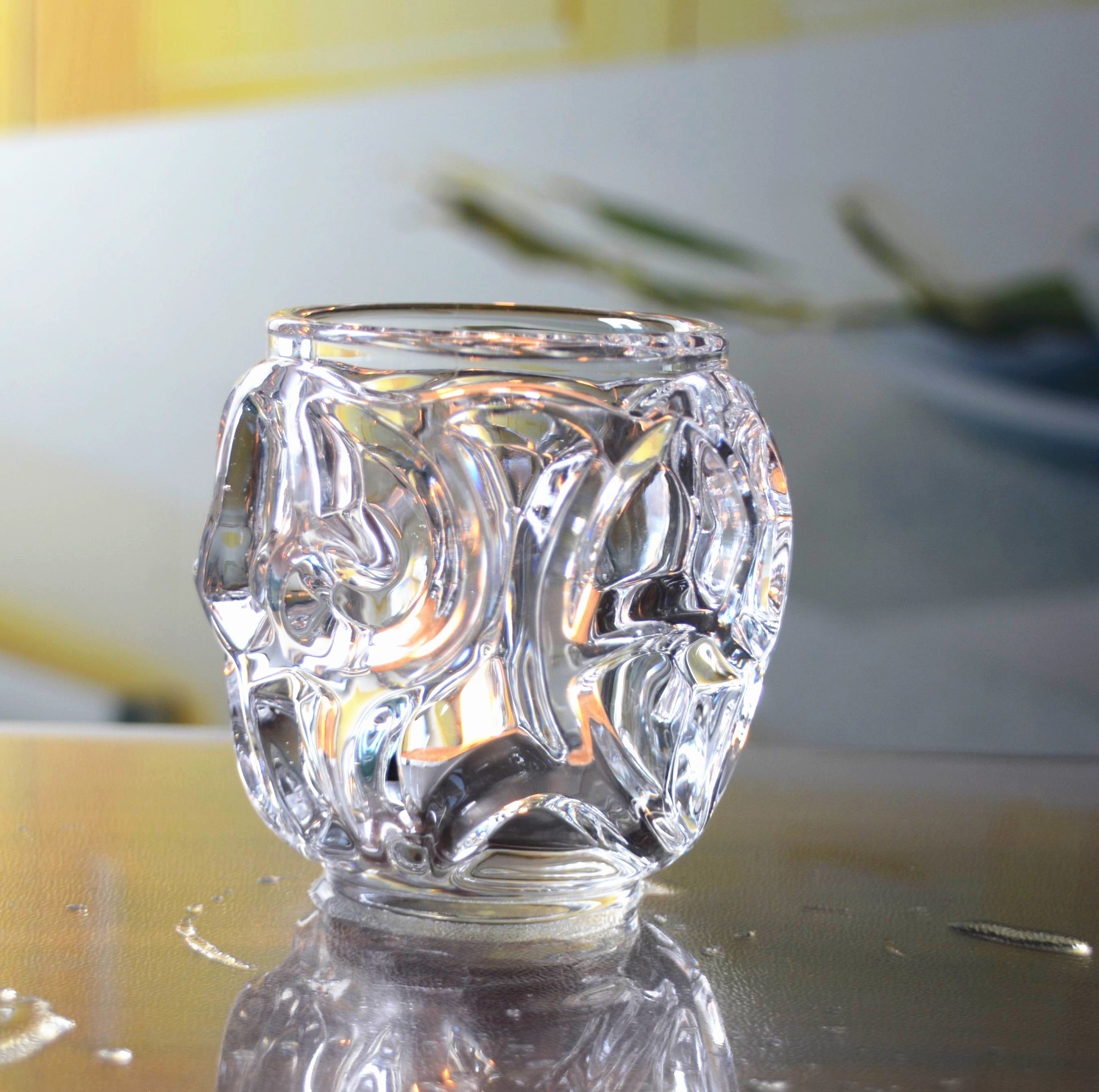 Heavy Duty Unique Ribbed Crystal Votive Glass Candle Holders For Tea Light